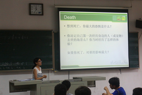 接着,班主任让同学们思考几个问题:“还记自己第一次经历身边的人(或宠物)去世的场景么?你当时经历怎样的体验?”、“如果你死了,对谁的影响最大?”、“从现在开始你做点什么能让自己在一年或五年之后回首想想不再有什么新的遗憾?”。同学们纷纷陷入了沉思之中。