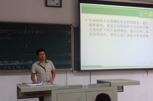 主题班会的最后,陀老师送给大家一句话:“生命的终点在明确而坚定的等候着,我们能够做的,就是在有限的时空内追求无限,无限的扩大对生命的感受。”