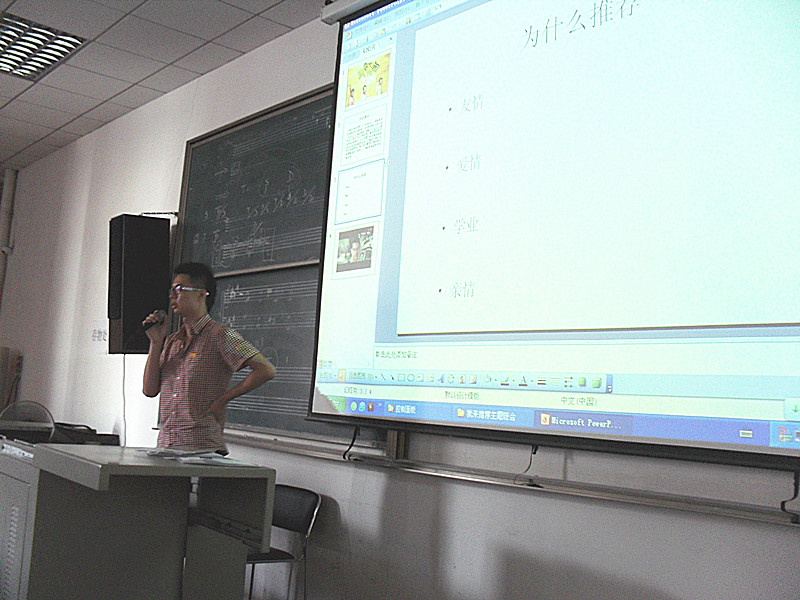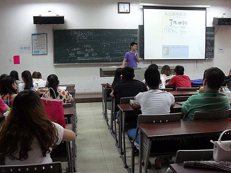 本网讯 (学生记者 谢澎)为了推进声乐系“班级建设年”活动,培育积极健康的班级文化,声乐系2011级于2013年6月18日下午18点在教学楼B604召开了“我来推荐”系列主题班会。本次班会由班主任陀柠瑜及班委策划,班会的内容是请同学们分享、交流自己喜爱的事物,可以是一本好书、一部电影或是一段经历等等。